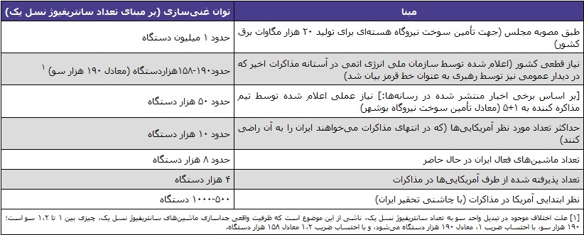 در حد تأمین سوخت نیروگاه بوشهر (یعنی حدود ۵۰ هزار سانتریفیوژ) را به